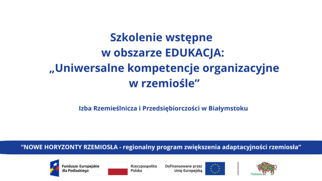 Podnosimy standardy organizacji pracy w podlaskim rzemiośle! Z ogromną satysfakcją informujemy o zakończeniu kolejnego etapu działań edukacyjnych w ramach projektu „NOWE HORYZONTY RZEMIOSŁA – regionalny program zwiększenia adaptacyjności rzemiosła” . Tym razem nasi uczestnicy wzięli udział w specjalistycznych warsztatach poświęconych uniwersalnym kompetencjom organizacyjnym w rzemiośle. Podczas intensywnych zajęć pracownicy organizacji rzemieślniczych zgłębiali kluczowe aspekty nowoczesnego […]