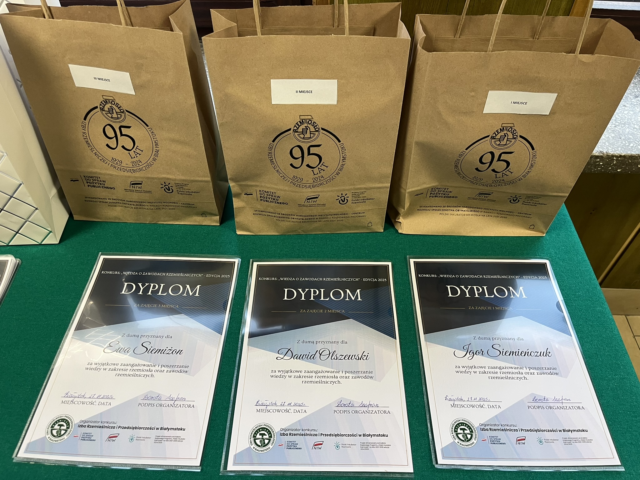 W dniu 27 listopada 2025 roku Izba Rzemieślnicza i Przedsiębiorczości w Białymstoku zaprosiła laureatów konkursu na uroczystą ceremonię podczas której podsumowano konkurs oraz wręczono nagrody. Uroczystość była doskonałą okazją, aby wspólnie celebrować sukcesy młodzieży oraz podkreślić wagę rzemiosła oraz zawodów rzemieślniczych w dzisiejszym świecie.